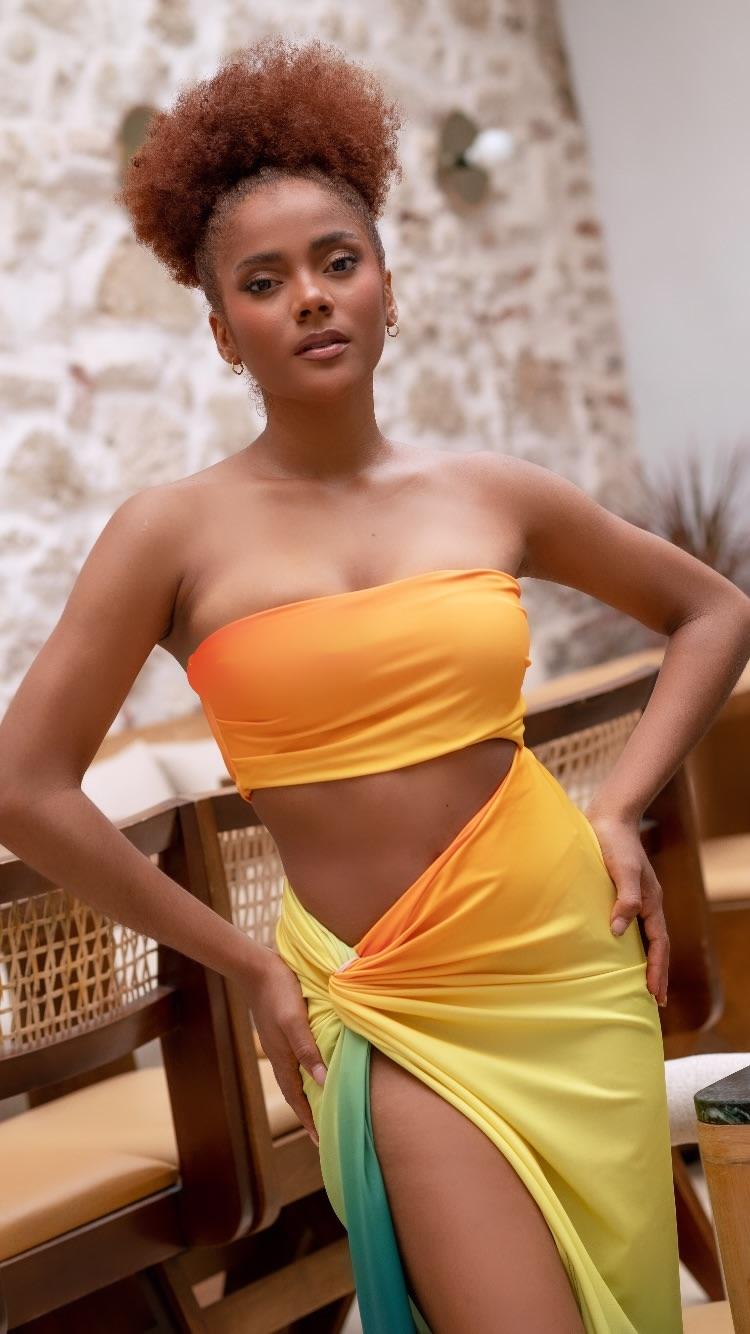 Fresco, versátil y lleno de color. Este set de dos piezas incluye un crop top strapless y una falda tipo pareo con nudo lateral y abertura que aporta sensualidad y libertad de movimiento. Disponible en degradé amarillo, en tonos cálidos de naranja y azul, es el look perfecto para vacaciones, días soleados o planes junto al mar e incluso para una cena romántica en la noche 💕🫠