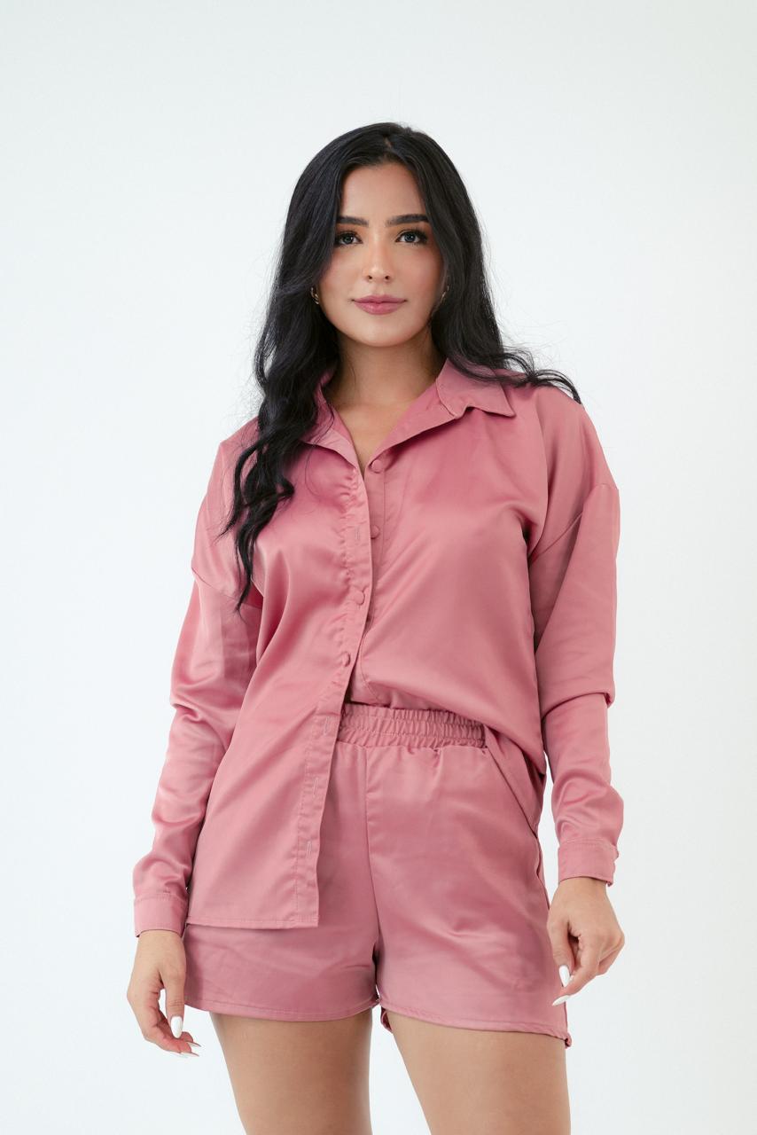 Conjunto de short y camisa manga larga en tela satinada. Luce femenina aprovechando la comodidad de este set, aprovechando su versatilidad para verte auténtica.